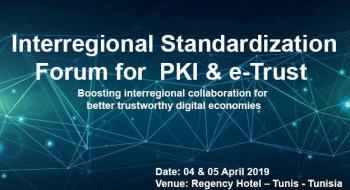 تنظم الوكالة الوطنية للمصادقة الإلكترونية الدورة الثانية من "منتدى التقييس الأقاليمي لهيكل المفتاح العمومي و الثقة الرقمية " الذي سيعقد يومي 4 و 5 أبريل 2019 في فندق ريجنسي ، قمرت - تونس. يقع هذا الحدث تحت رعاية وزارة تكنولوجيات الاتصال والاقتصاد الرقمي التونسية و بالتعاون مع الاتحاد الدولي للاتصالات (ITU) والاتحاد الإفريقي للاتصالات (ATU) والمنظمة العربية لتكنولوجيا المعلومات والاتصالات (AICTO).